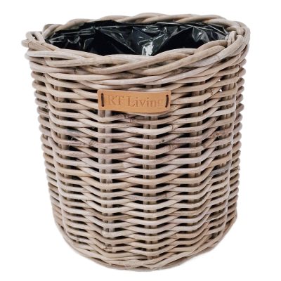 Round Grey Rattan Planter Basket with Liner