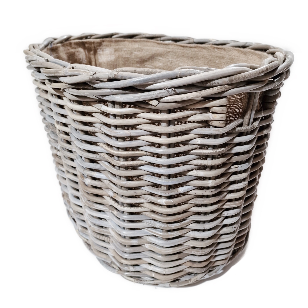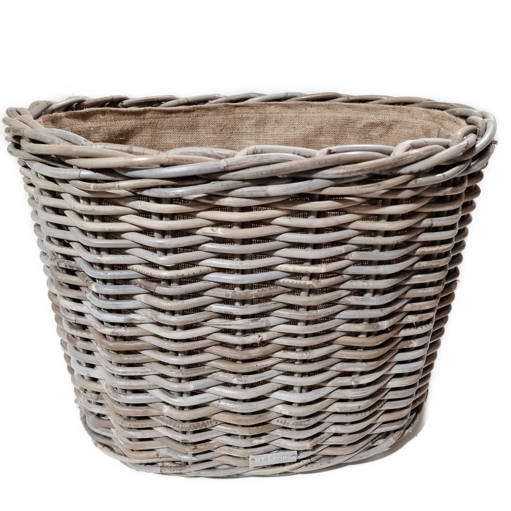 A simple elegant log basket oval in shape with finger holes at the sides for carrying.  They are extremely robust and have a jute liner to keep your floors clean. Would make an excellent planter too!  Available in 2 sizes.  Handmade in grey kubu rattan from Indonesia.