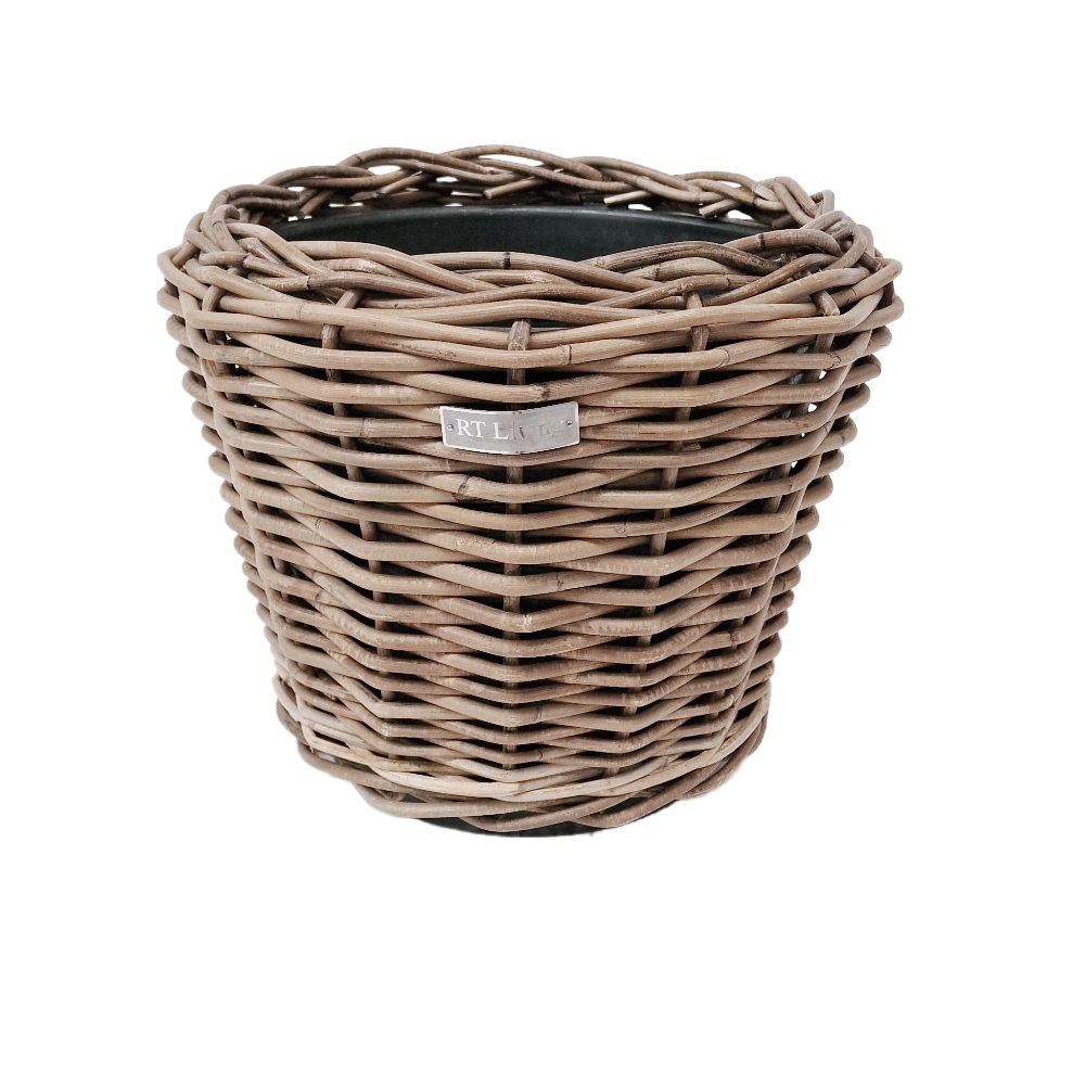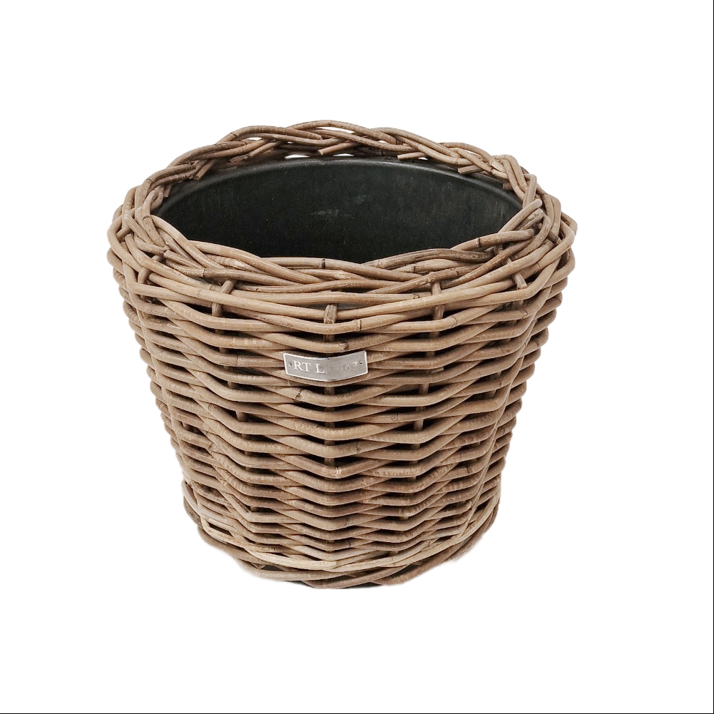 These superb quality round shaped planters are woven in grey rattan in Indonesia.