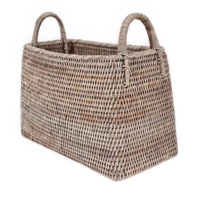Tall Oval Grey Rattan Lined Log Basket