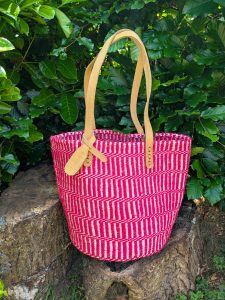 More beautiful African sisal over the shoulder bags in a lovely bright pink and an electric blue with a tan colour handle. Exclusively from Kosmopolitan.