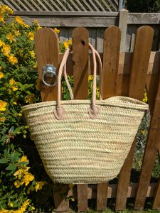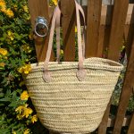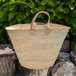 A simple palm basket with a lovely natural leather rim and double handles.  Or this plain double handled with flat natural leather straps.