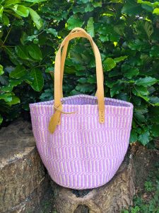 This large and roomy Supermarket palm basket makes an excellent beach bag whilst something bright & striped in lilac!!!